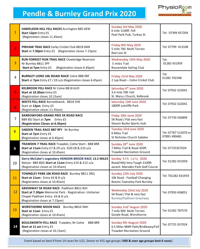 Here are the details of the 2020 Senior Pendle and Burnley Grand Prix Championships, sponsored by PhysioRoom.com