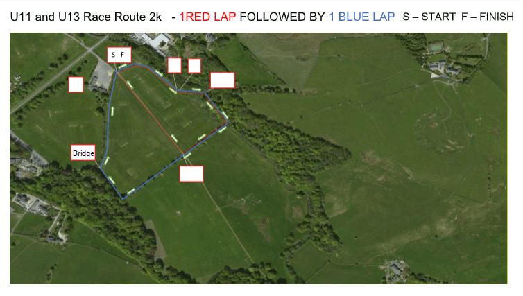 U11s & U13s – you are doing ONE RED LAP then ONE BLUE LAP. Make sure you DON’T go over the bridge on the map.