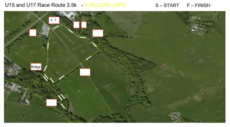 U15s & U17s – you are doing TWO YELLOW LAPS that also takes you into the woods (near the bridge)